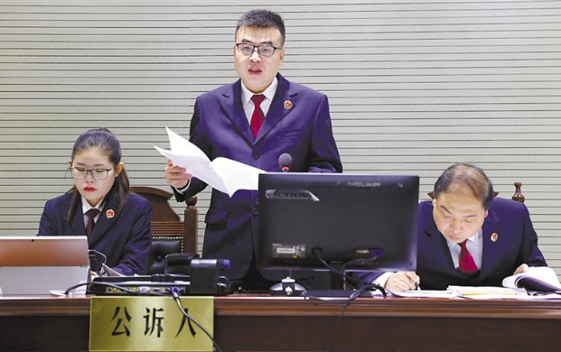 安康铁路运输检察院办案检察官在法庭上指控诈骗犯罪被告人的犯罪事实。