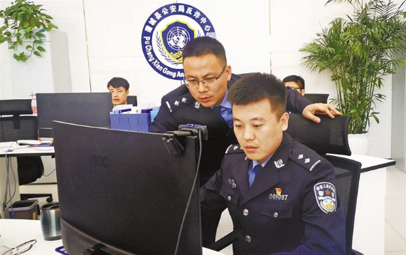 反诈中心民警研判案情。